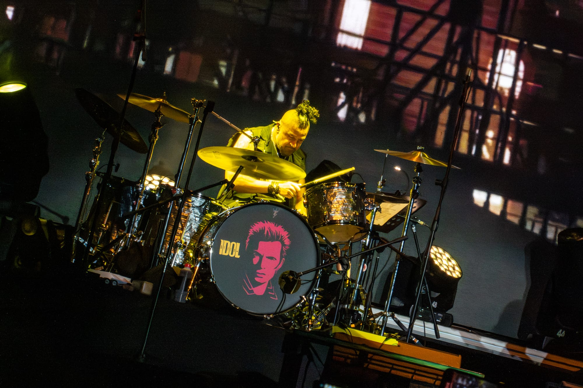 El show inició con “Still Dancing”, tema de su más reciente disco Dream Into It, una apertura que funcionó como declaración de intenciones: Idol sigue en movimiento, sigue creando, sigue rockeando. A partir de ahí, el repertorio se convirtió en un viaje directo a lo mejor de su historia, una descarga constante de clásicos como “Cradle of Love”, “Flesh For Fantasy”, “Eyes Without a Face”, “Dancing With Myself”, “Hot in the City” y una electrizante versión de “Rebel Yell”.