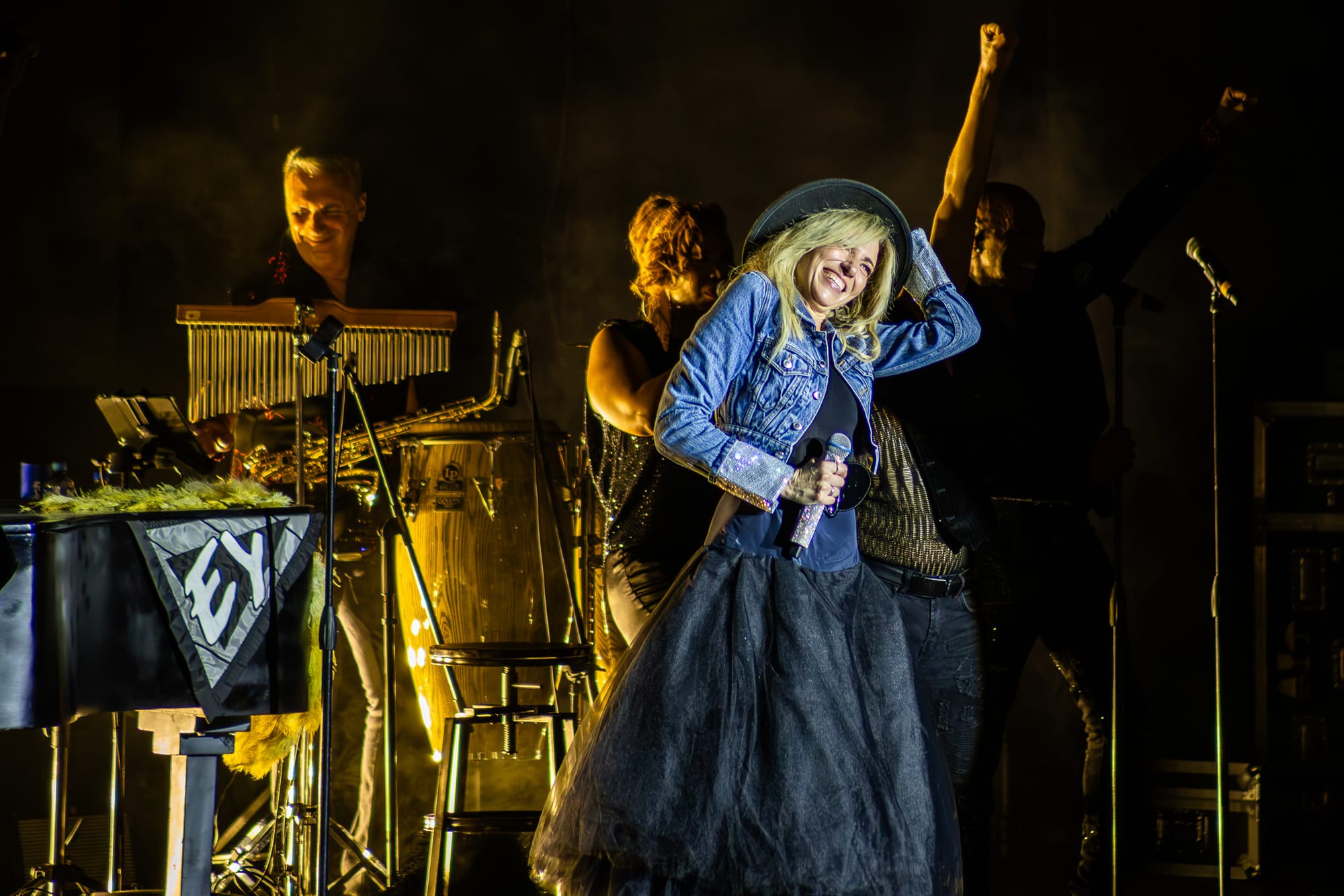 Uno de los temas más esperados llegó con Shake Your Love. El ritmo marcó el pulso de una audiencia completamente entregada. Luego vino Only in My Dreams, con Debbie reapareciendo en un nuevo atuendo: vestido negro y su característico sombrero, que terminó convirtiéndose en souvenir para un fan afortunado.