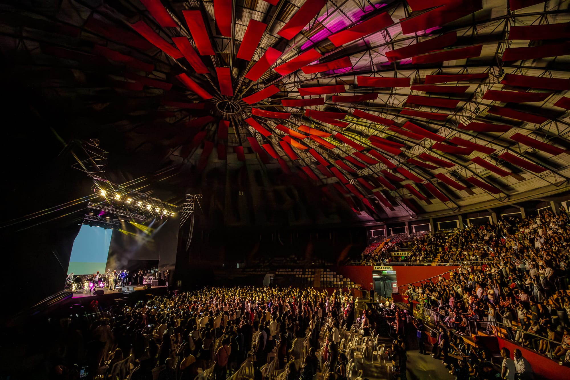 Llegada la hora de inicio, las pantallas del coliseo proyectaron imágenes icónicas de su carrera. Videoclips, recuerdos y momentos emblemáticos. La banda tomó el escenario primero y al ritmo de la música, preparó al público para lo que estaba por venir.