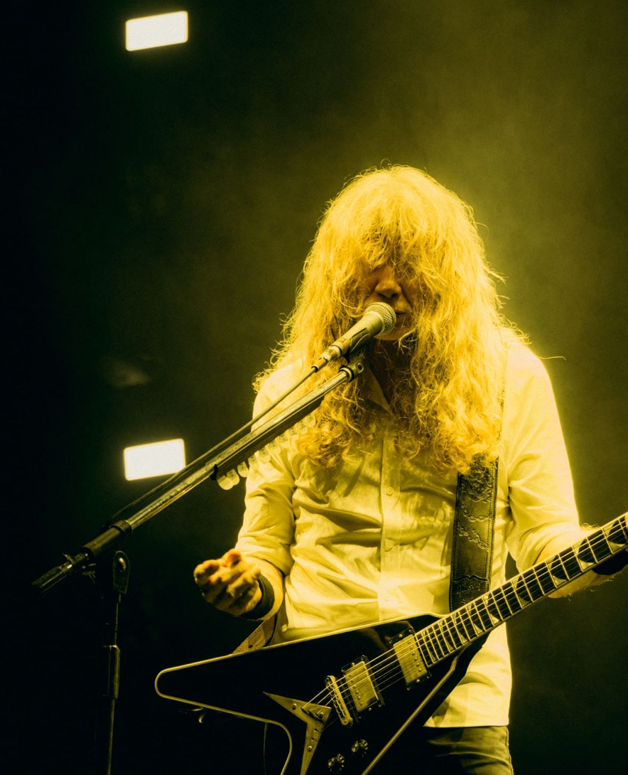 Desde el primer momento, la banda demostró por qué es una de las grandes leyendas del metal. Dave Mustaine, con su icónica presencia y voz característica, nos llevó por un viaje lleno de pasión y energía. La conexión con el público fue inmediata y palpable; cada acorde, cada grito, cada nota tocada era un eco de la historia del metal que resonaba en el corazón de todos los asistentes. En esta tercera visita de la banda a nuestro país, se presenció una formación sólida y con nombres de peso para la escena metal: Dave Mustaine (guitarra y voz), Teemu Mäntysaari (guitarra), James LoMenzo (bajo) y Dirk Verbeuren (batería), todos de una amplia experiencia e impecables en ejecución. La noche arrancó con “The Sick, the Dying... and the Dead!", canción perteneciente a la última producción de la banda y “Dread and the Fugitive Mind”.