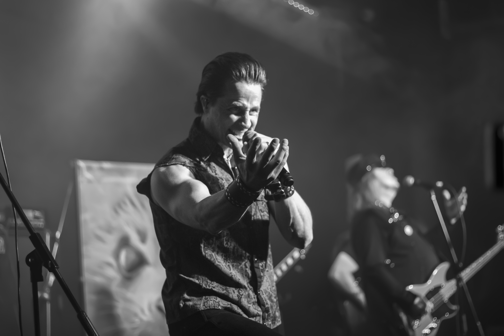 La química entre los miembros de Riot V fue innegable. Mike Flyntz y Jonathan Reinheimer en las guitarras se batían en duelos eléctricos, creando una atmósfera en la que cada nota vibraba en lo más profundo del alma. Frank Gilchriest en la batería y Don Van Stavern en el bajo aportaban una base sólida y arrolladora que no daba tregua. Mención aparte merece Todd Michael Hall, cuya voz fue el verdadero corazón de la noche.