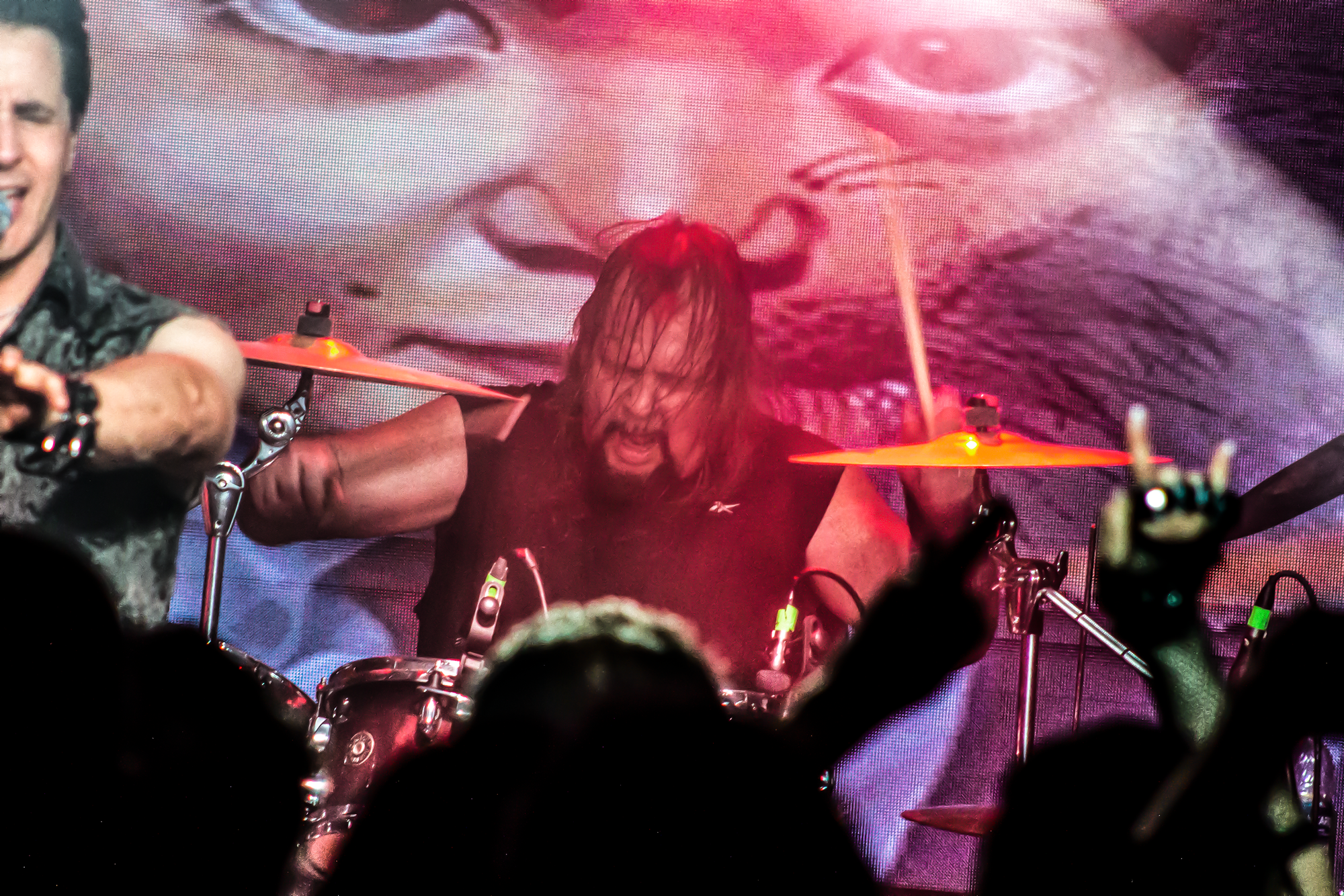 Fue una embestida de puro metal, y la banda, incansable, seguía impulsando esa avalancha sonora que llevó al público a un estado de frenesí absoluto.